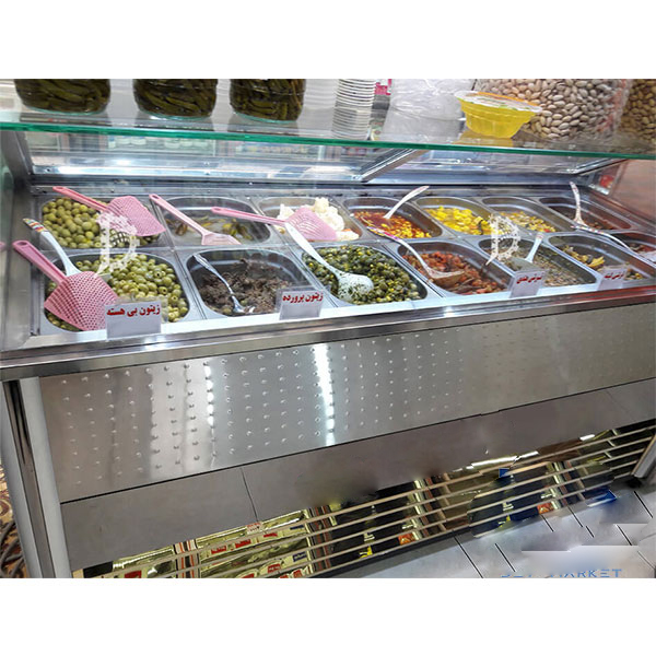 - تاپینگ ثابت:تاپینگهای ثابت معمولاً در محیطهای فروشگاهی یا رستورانها به کار میروند و به صورت ثابت در یک مکان قرار میگیرند. تاپینگهای ثابت به عنوان یک نمایشگر جذاب برای ترشیها و پنیرها عمل میکنند و به مشتریان این امکان را میدهند که به راحتی محصولات را مشاهده و انتخاب کنند. تاپینگهای ثابت با سیستمهای خنککننده پیشرفته، دمای مناسب برای نگهداری ترشیها و پنیرها را حفظ میکنند و از فساد آنها جلوگیری میکنند.